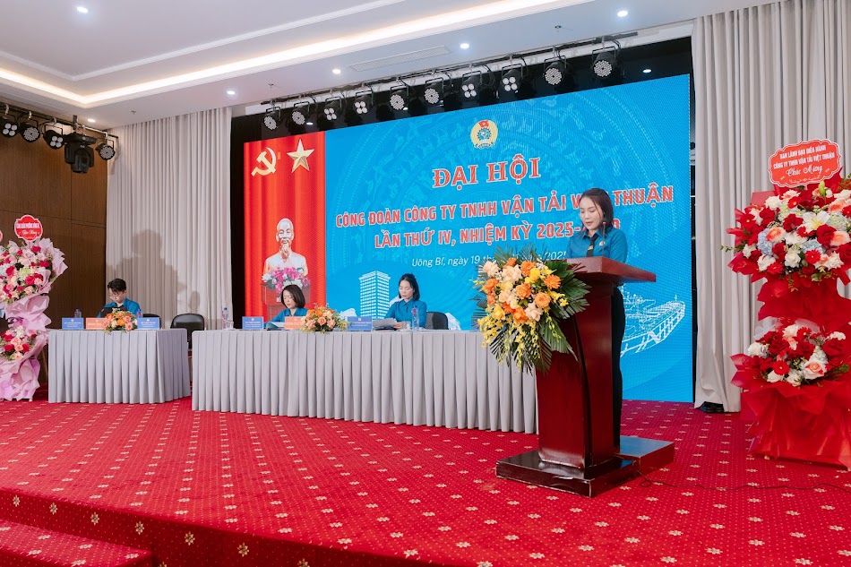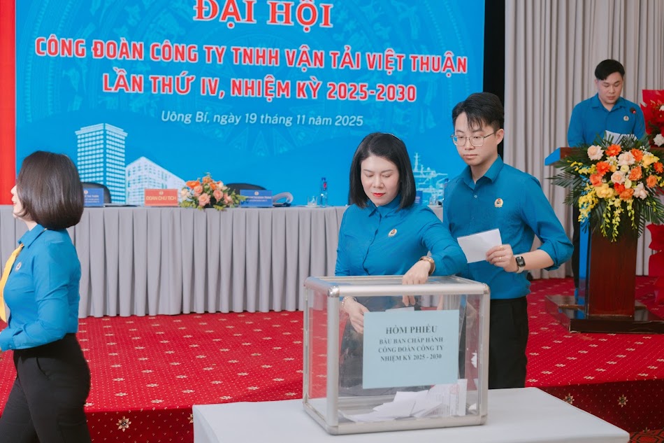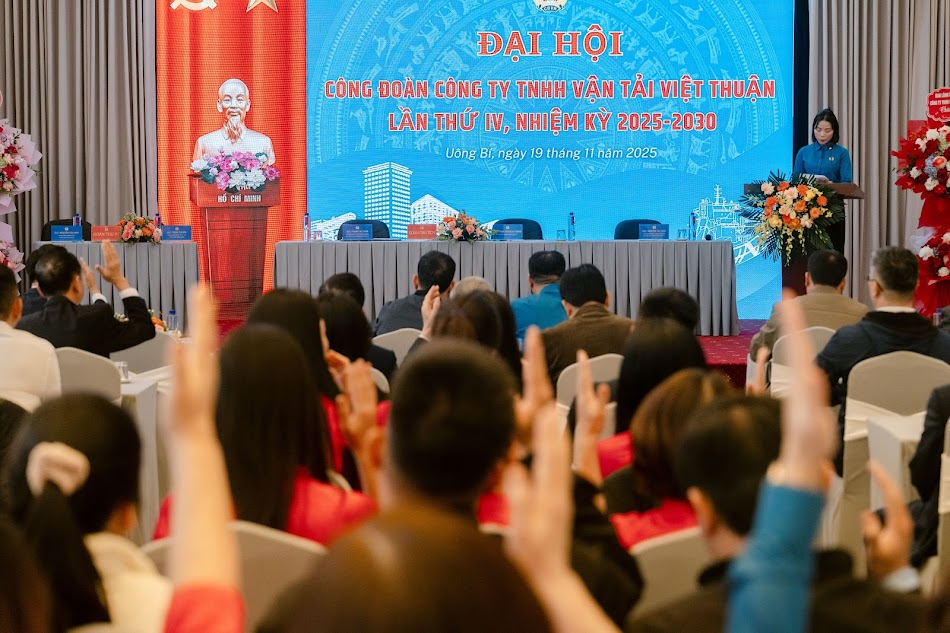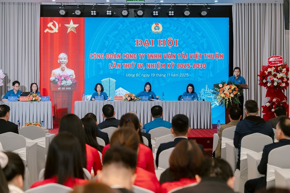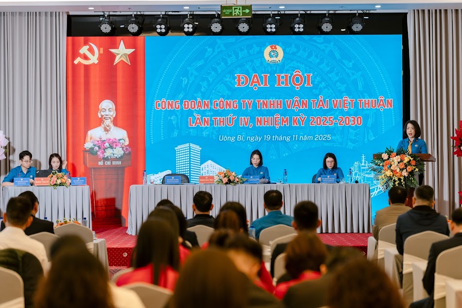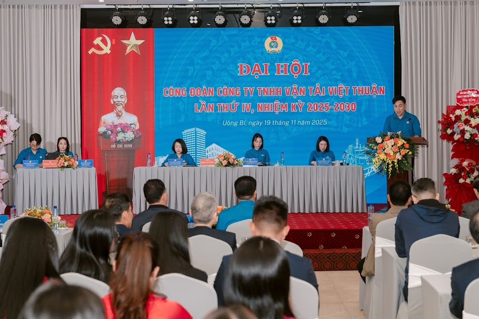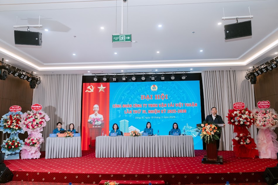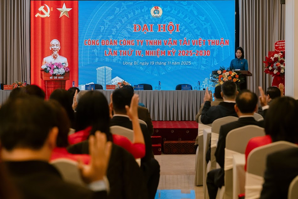 Chiều 19/11/2025, tại Hội trường tầng 7 – Trụ sở Công ty, Đại hội Công đoàn Công ty TNHH vận tải Việt Thuận lần thứ IV, nhiệm kỳ 2025–2030 đã diễn ra trong không khí đoàn kết, dân chủ và trách nhiệm. Sự kiện quy tụ 150 đại biểu chính thức, đại diện cho hơn 1.200 cán bộ, nhân viên và thuyền viên của toàn Công ty.