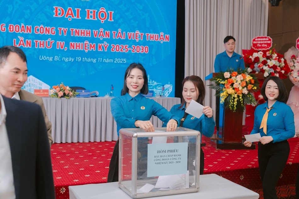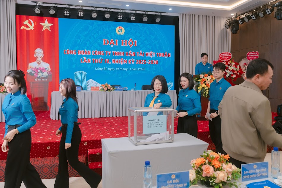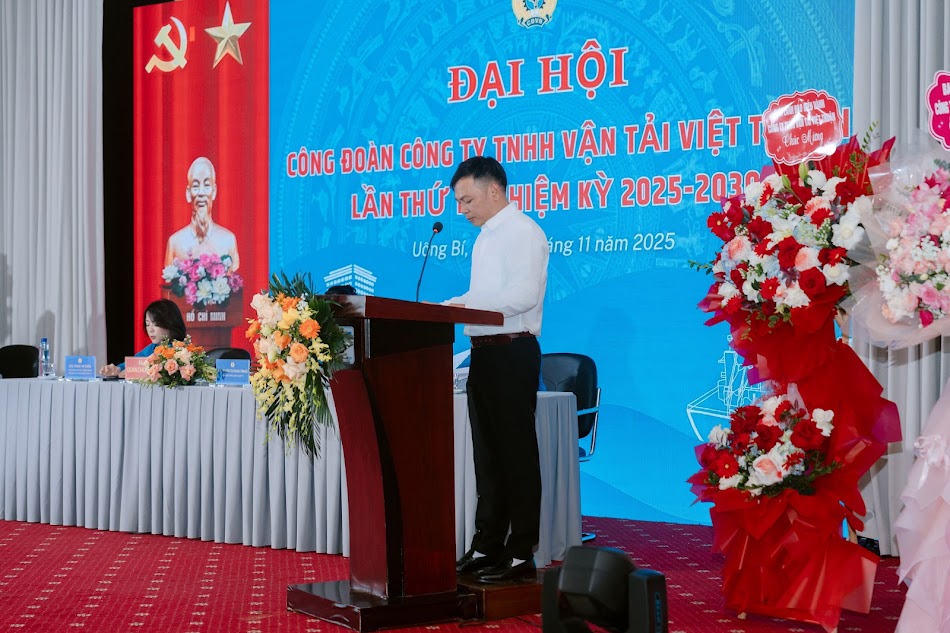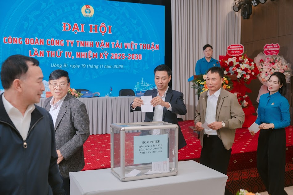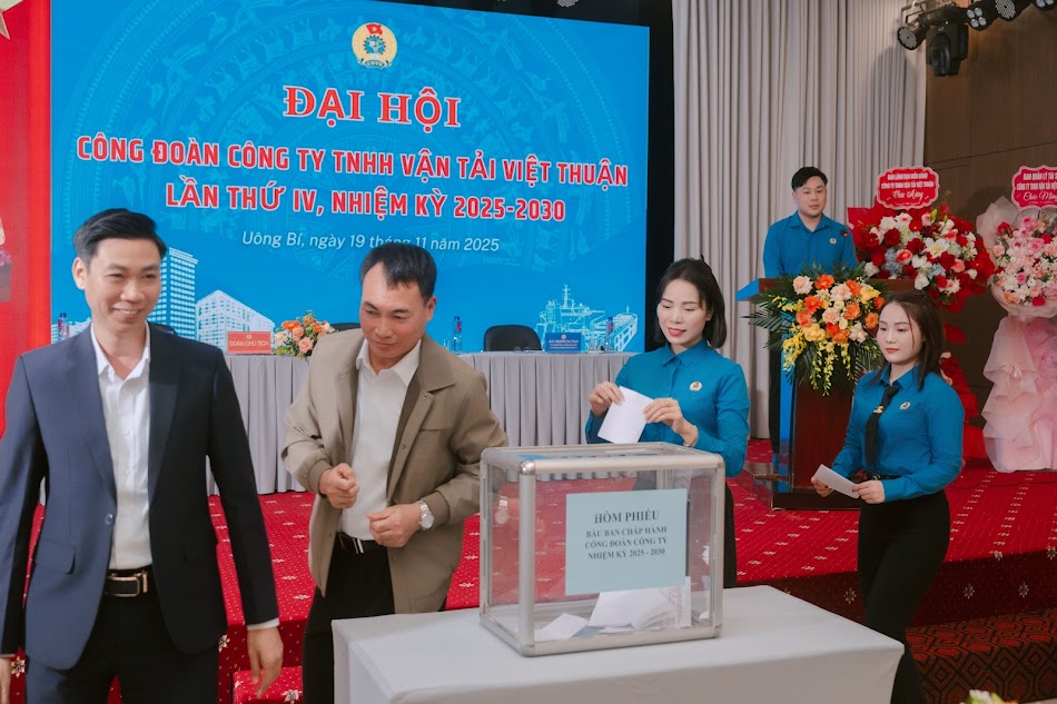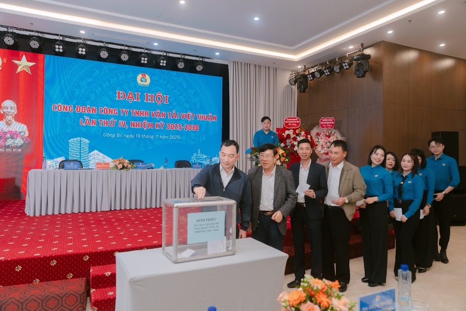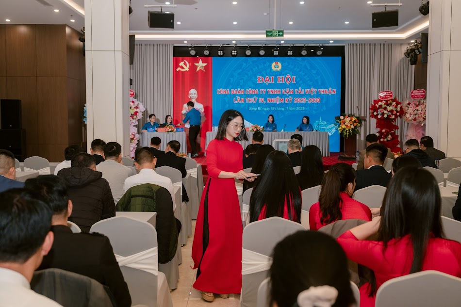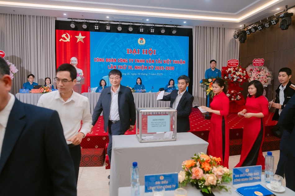 Chiều 19/11/2025, tại Hội trường tầng 7 – Trụ sở Công ty, Đại hội Công đoàn Công ty TNHH vận tải Việt Thuận lần thứ IV, nhiệm kỳ 2025–2030 đã diễn ra trong không khí đoàn kết, dân chủ và trách nhiệm. Sự kiện quy tụ 150 đại biểu chính thức, đại diện cho hơn 1.200 cán bộ, nhân viên và thuyền viên của toàn Công ty.